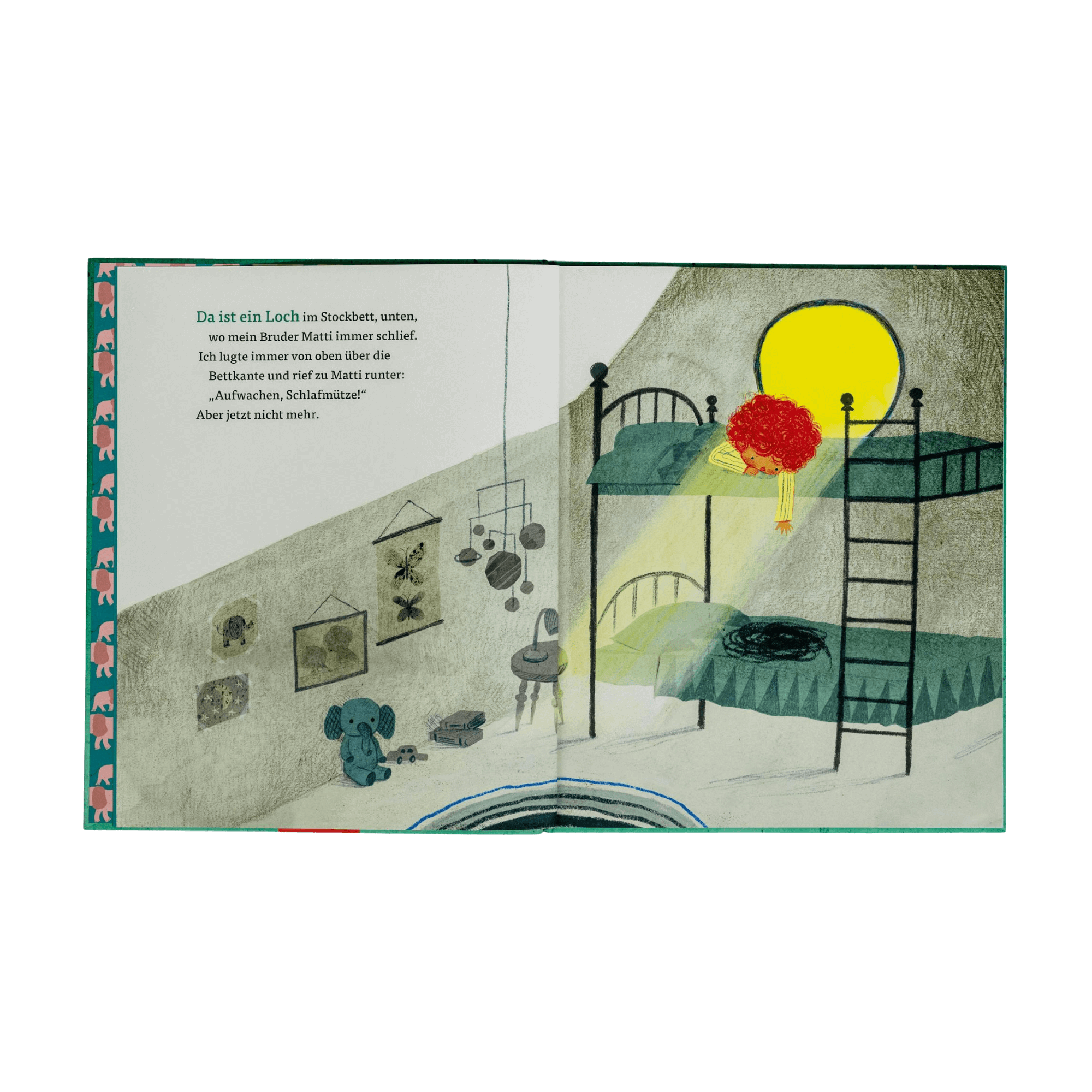 Wenn ein geliebter Mensch geht, bleibt eine Lücke zurück. Ein großes Loch, das immer da ist, das mit am Tisch sitzt, neben einem im Bett liegt und immer mitkommt, egal was man tut. Genauso geht es auch dem Kind in “Das Loch”, das den Verlust seines Bruders Matti verarbeiten muss. Das ist nicht leicht, denn Matti fehlt überall. Seine Geschichten, sein Lachen, sein verrückter Siegestanz, wenn er beim Schwertkampf gewonnen hat. Das Loch tut weh und das Kind weiß nicht genau, wie es damit umgehen soll.